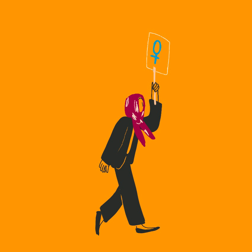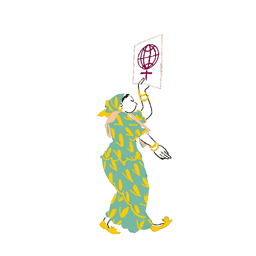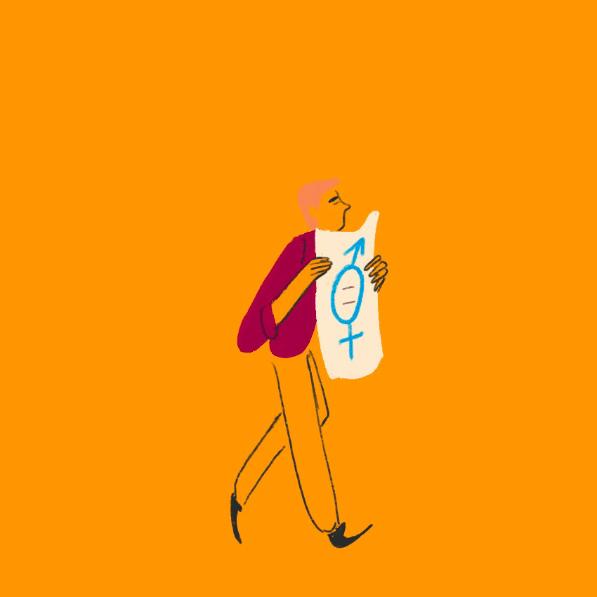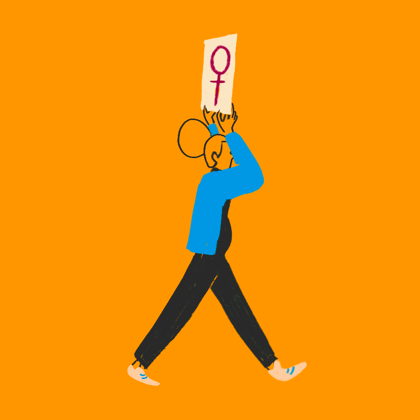 Rights make progress, only if they walk with us, if we support them day after day. Each individually, each for everyone. In this gif a small and colorful community on the move supports gender equality.