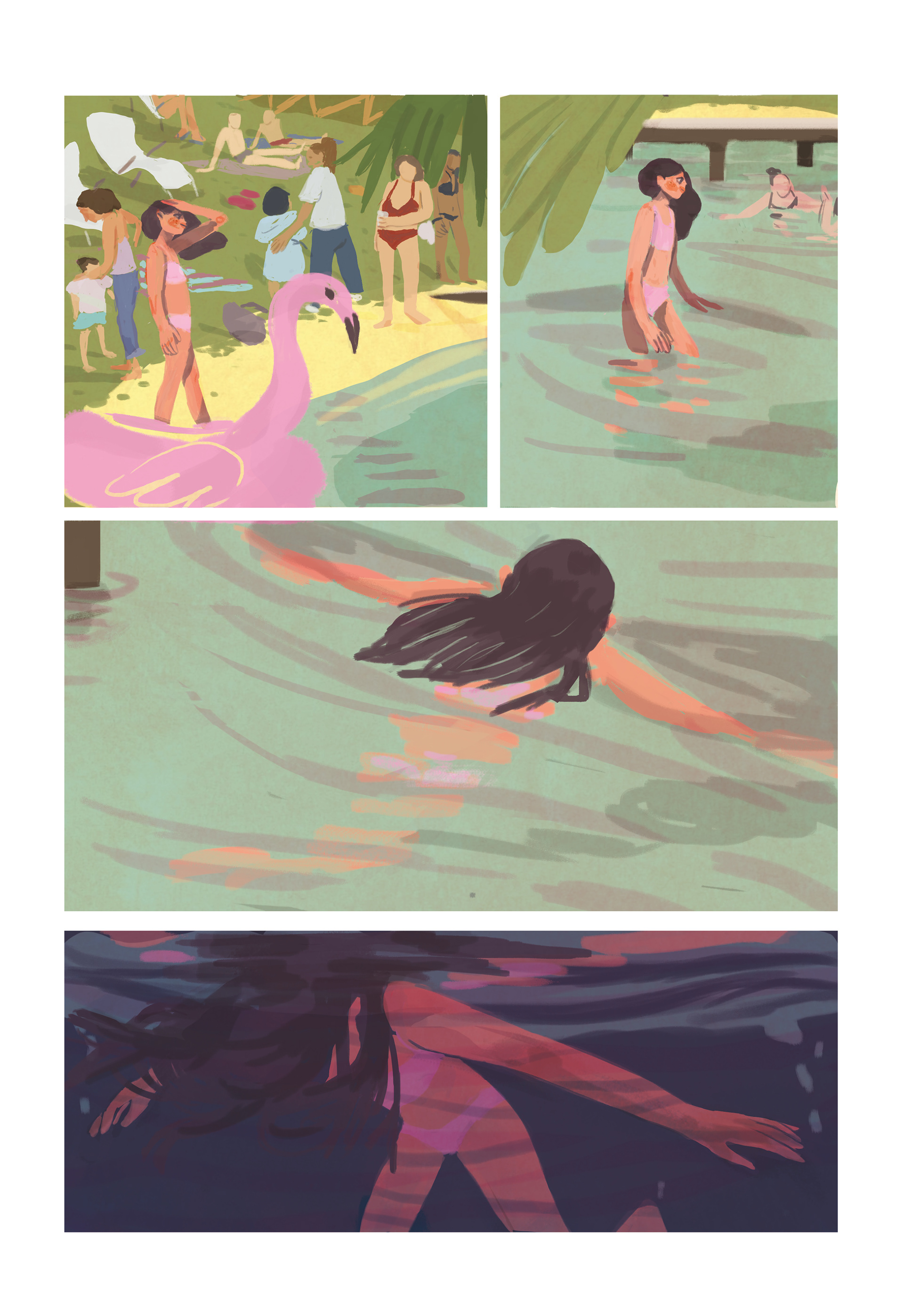 World dei Daft Punk nell’atmosfera magica del lago, dove in questa piccola narrazione, diventa una specie di “incubo subacqueo”, affascinante tanto da spingere la protagonista a seguire i personaggi che incontra, ma spaventoso, proprio come era racchiuso nel mio ricordo di quando guardavo in tv il videoclip, a sette anni.