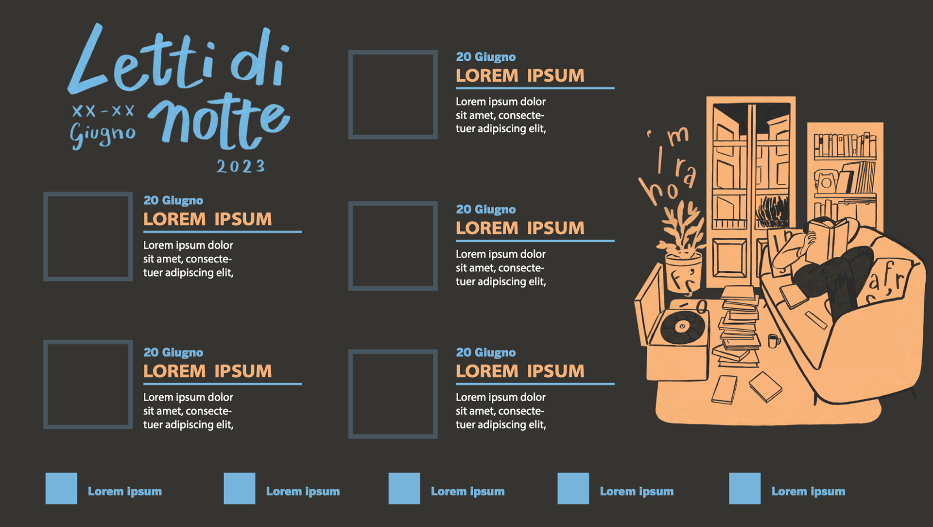 Illustration for literary festival poster "Letti di notte" by Gruppo di lettura Carmagnola (Italy) - 6-7 Giugno 2023